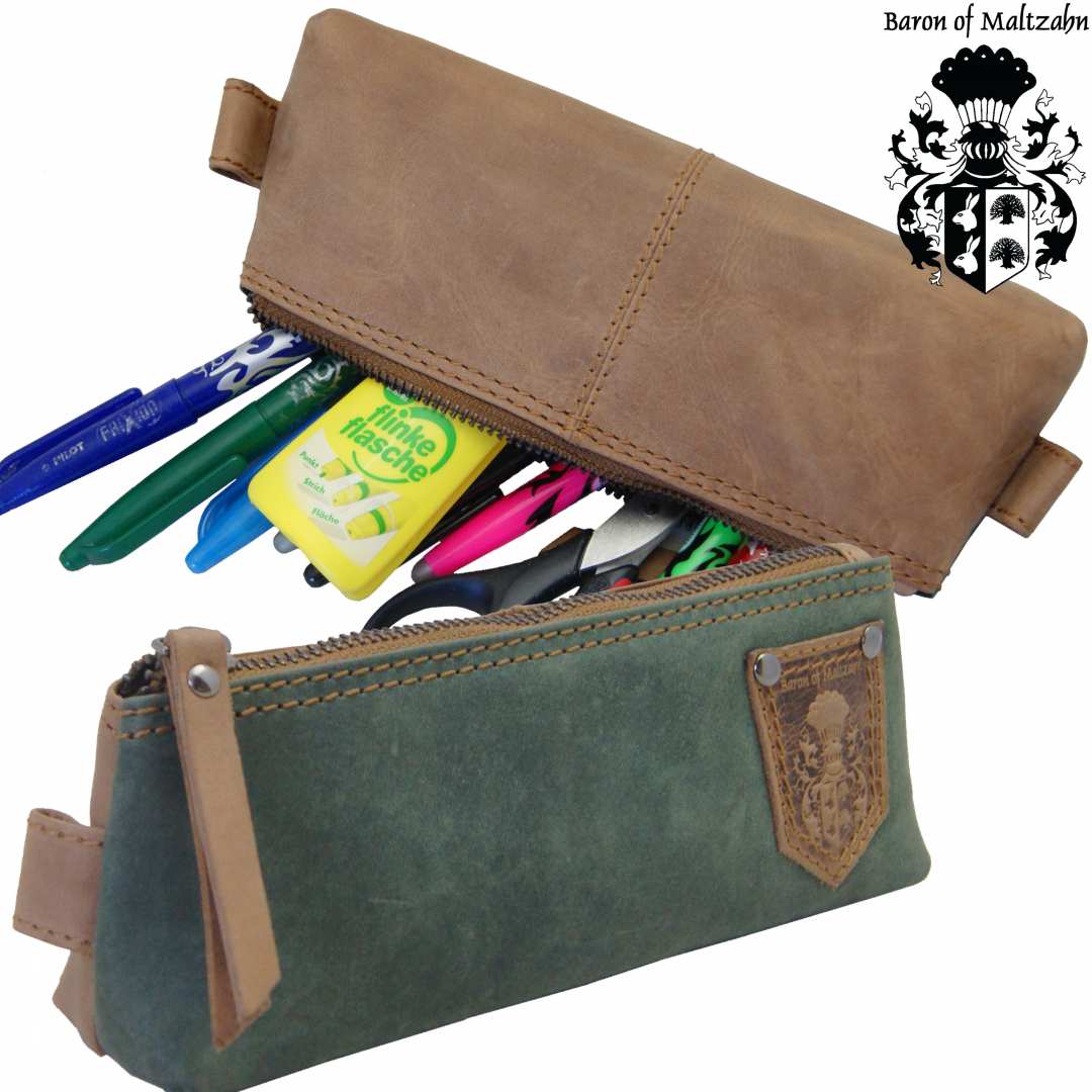 Das Mäppchen aus echtem Vollrindleder aus der Kollektion: Baron von Maltzahn bietet genügend Platz für Lineal, Bleistift und Füller. Es ist der ideale Begleiter für Schüler und Studenten, aber auch im Büro schafft es eine Ordnung in Ihrem Stiftehaushalt. Das Leder Federmäppchen ist hochwertig handwerklich verarbeitet. Das robuste Mäppchen überzeugt zusätzlich mit edlem Design.