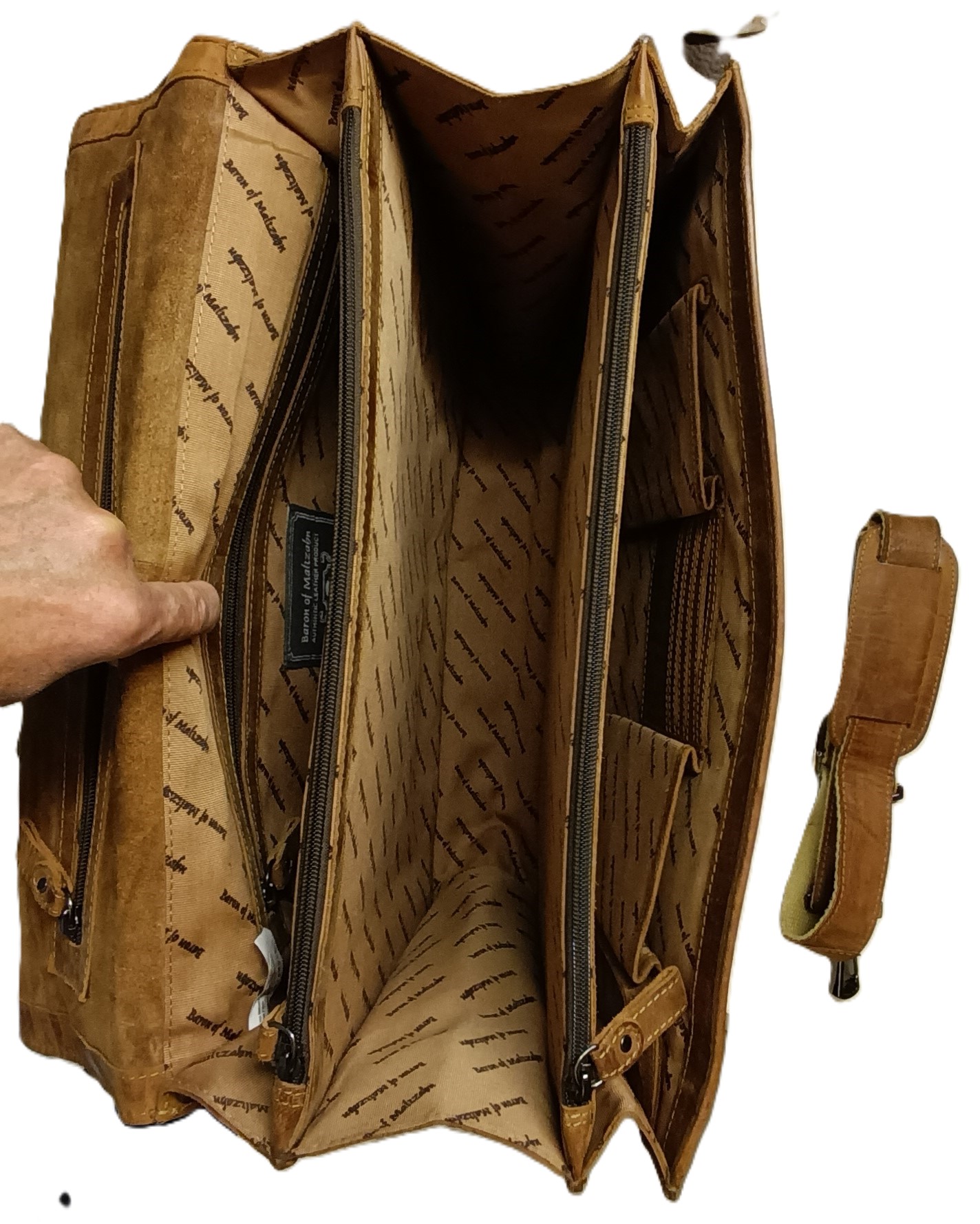 Unsere große Aktentasche aus Grassland-Leder ist strapazierfähig. Die Hauptfächer haben eine Größe von ca. 40 x 30 x 10 cm, 40 x 30 x 6 cm und 37 x 30 x 5 cm (BxHxT). Vier Reißverschlussfächer innen, ein Reißverschluss außen sowie drei Vordertaschen (1x ca. 39 x 24 cm (BxH); 2x ca. 13 x 17 x 2 cm (BxHxT) runden den Komfort ab. Mit dem Schultergurt, der individuell zwischen 105 und 145 cm auf Ihre Körpergröße eingestellt wird, können Sie die Aktentasche aus Grassland-Leder mit Leichtigkeit an jeden Ort transportieren.