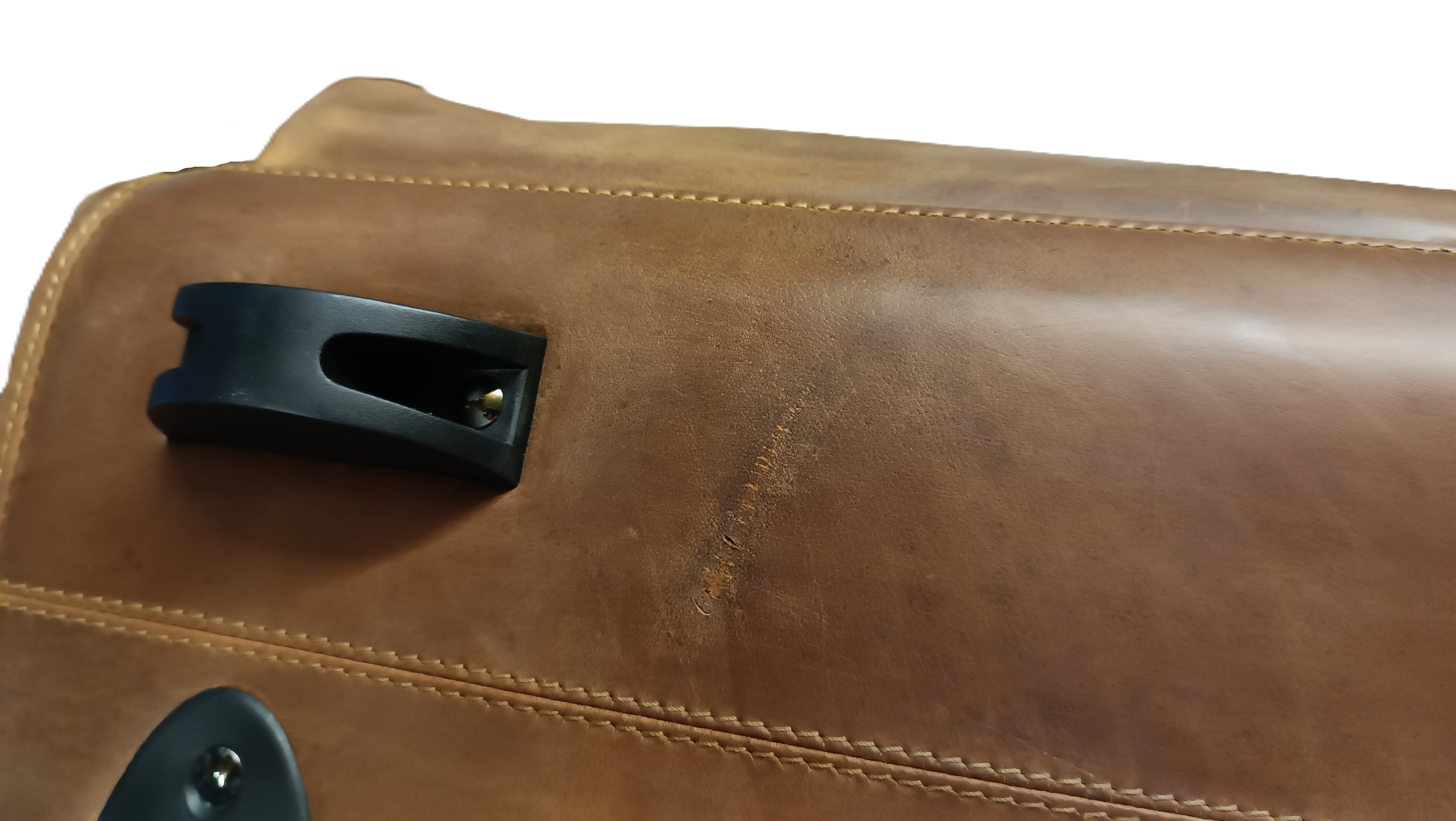- Materialqualität: Vollrindleder, Metallbeschläge