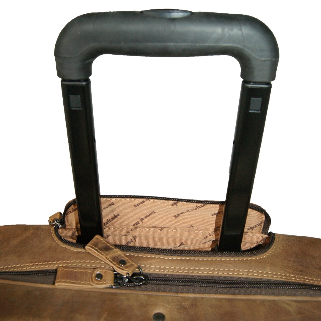 Der braune Pilotenkoffer besteht aus hochwertigem, naturbelassenem Grassland Leder. Dieses überzeugt durch seine Langlebigkeit und Widerstandsfähigkeit. Außerdem wird das Vollrindleder unseres Trolleys nur trommelgefärbt, was ihm ein natürliches Aussehen verleiht. Das bedeutet, die ursprünglichen Fellmerkmale bleiben erhalten.
