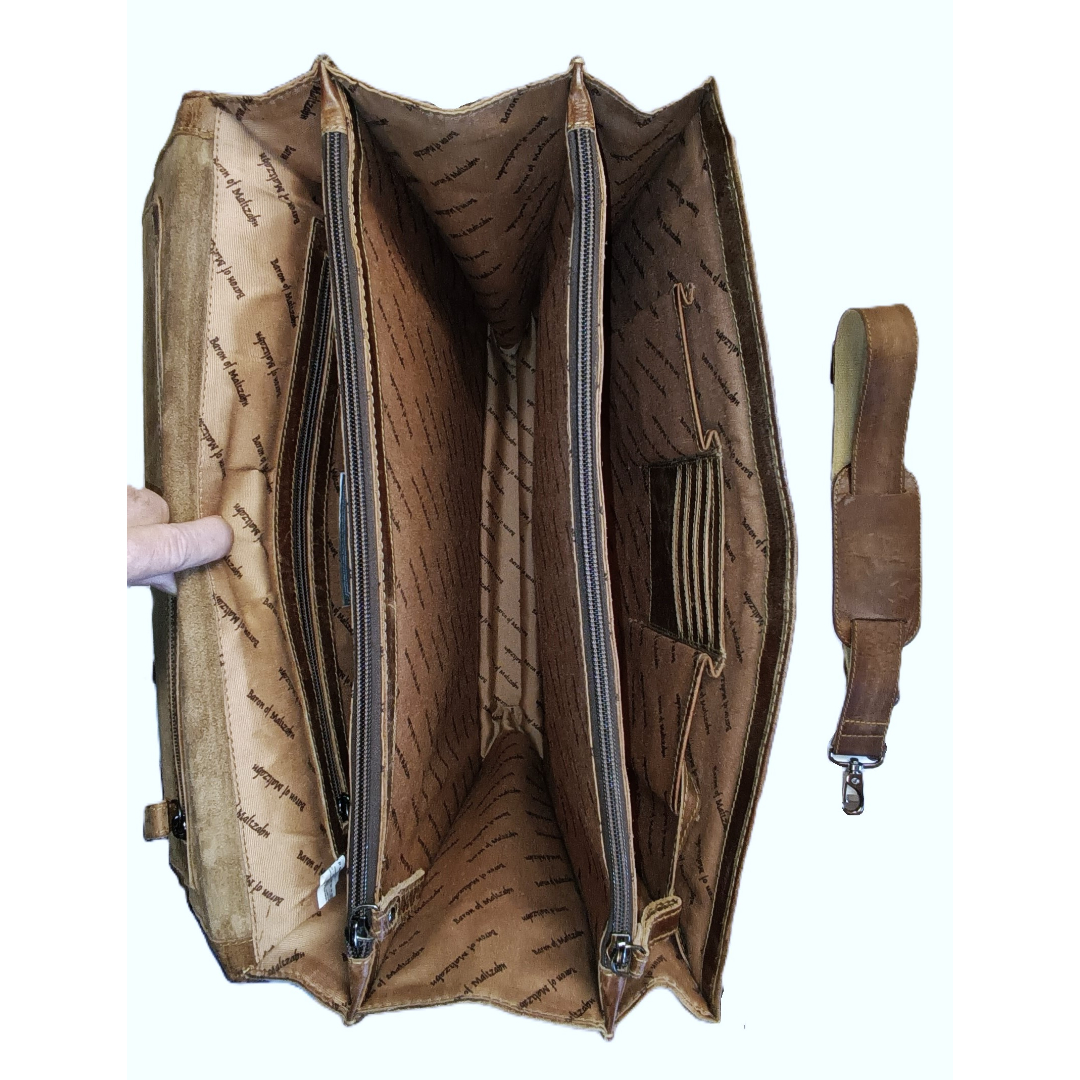 Durch das einzigartige Design verströmt die große Aktentasche aus Grassland-Leder eine Aura von Wertigkeit und Individualität. Tragen Sie sie ganz nach Belieben in der Hand oder lässig über der Schulter und Sie werden die Blicke andere Menschen fast magisch anziehen.